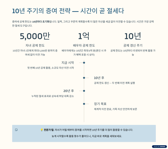 증여세는 10년 주기로 공제 한도가 리셋되거든요.