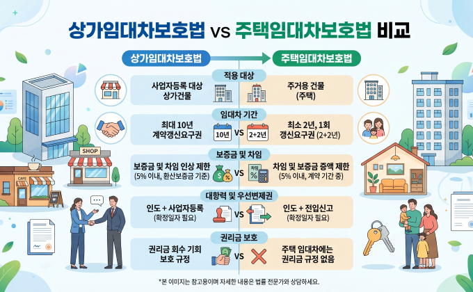 | 구분 | 주택임대차보호법 | 상가건물 임대차보호법 |