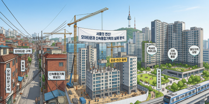 대한민국 서울에서 '재개발'이라는 단어는 오랫동안 희망과 고통의 양면성을 지녀왔습니다. 한 번 구역 지정이 되면 강산이 변한다는 10년은 기본이고, 조합 내 갈등과 복잡한 행정 절차로 인해 대를 이어 기다려야 한다는 푸념이 나오기도 했습니다. 하지만 2026년 현재, 서울의 낡은 저층 주거지들은 과거와는 전혀 다른 속도로 변신하고 있습니다. 그 중심에는 행정의 문턱을 대폭 낮추고 '속도'와 '통합'에 방점을 찍은 **신속통합기획(신통기획)**과 **모아타운**이 있습니다. 이는 단순히 낡은 집을 부수고 새 집을 짓는 기술적 공정을 넘어, 서울이라는 거대 도시의 노후화를 해결하기 위한 정책적 혁명에 가깝습니다.