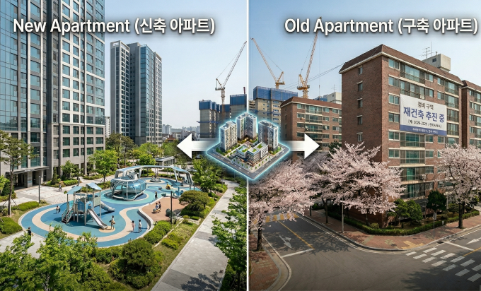 📌 파트너의 영리한 팁: 10년 뒤를 상상해 보세요. 지금의 신축은 10년 뒤 '준신축'이 되어 가치가 평범해지지만, 지금의 구축 중 재건축 속도가 빠른 곳은 10년 뒤 '대장 신축'으로 화려하게 부활합니다. 현재의 안락함과 미래의 부 중 당신은 어디에 더 가중치를 두시겠습니까?